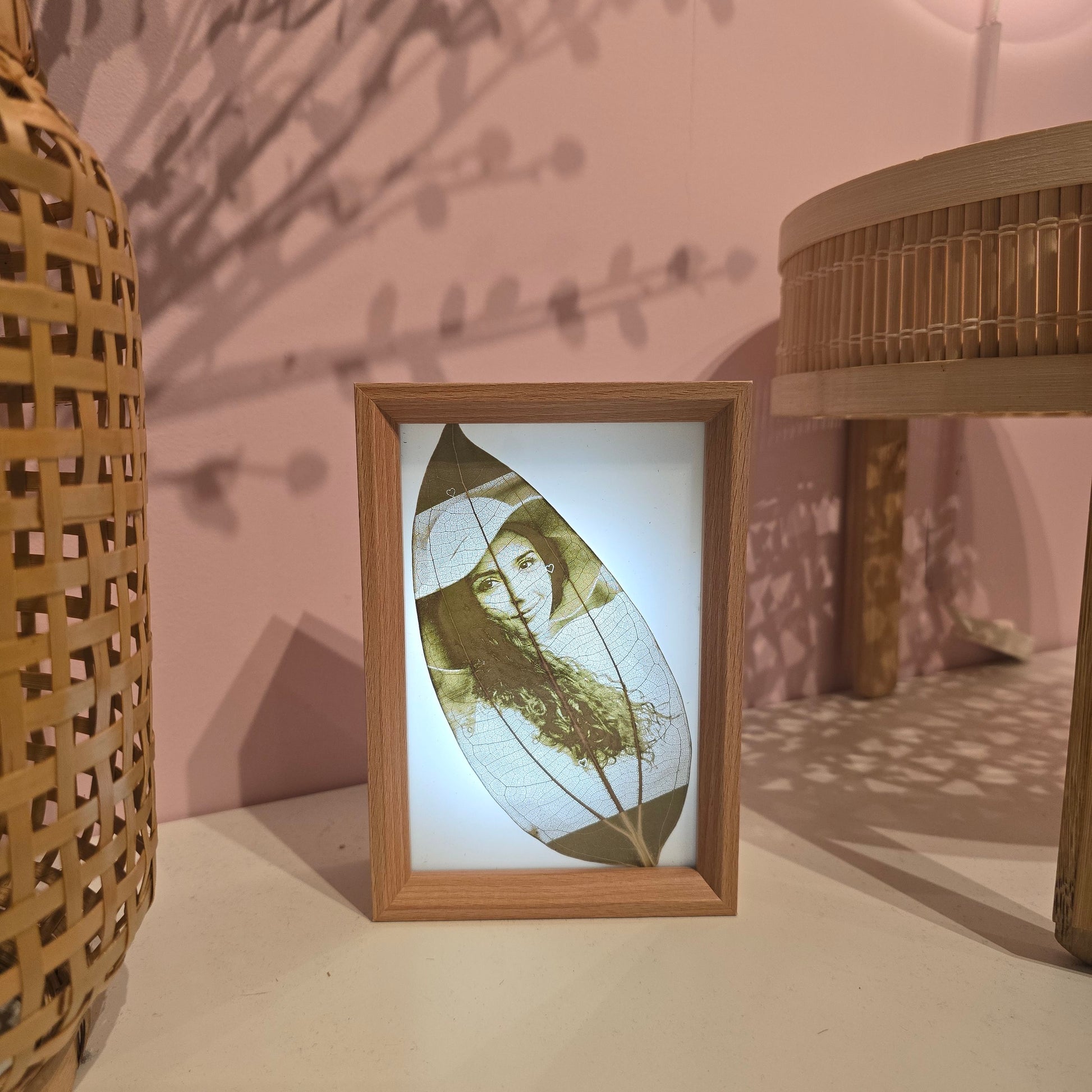 Your photo is engraved onto a real natural leaf and placed inside a 7-inch LED display frame. Each piece also comes with a personalized short video you can share on social media.